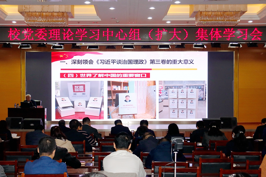 为贯彻落实中央、省委和省委教育工委的有关部署要求,推动全校广大干部师生深入学习习近平新时代中国特色社会主义思想,9月25日上午8:30,我校在主楼一楼报告厅召开校党委理论学习中心组(扩大)暨“迎校庆”百名大家进校园系列讲座,本次讲座为新时代高教改革发展政策理论与实践培训班第十七讲。本次学习会采取线上+...