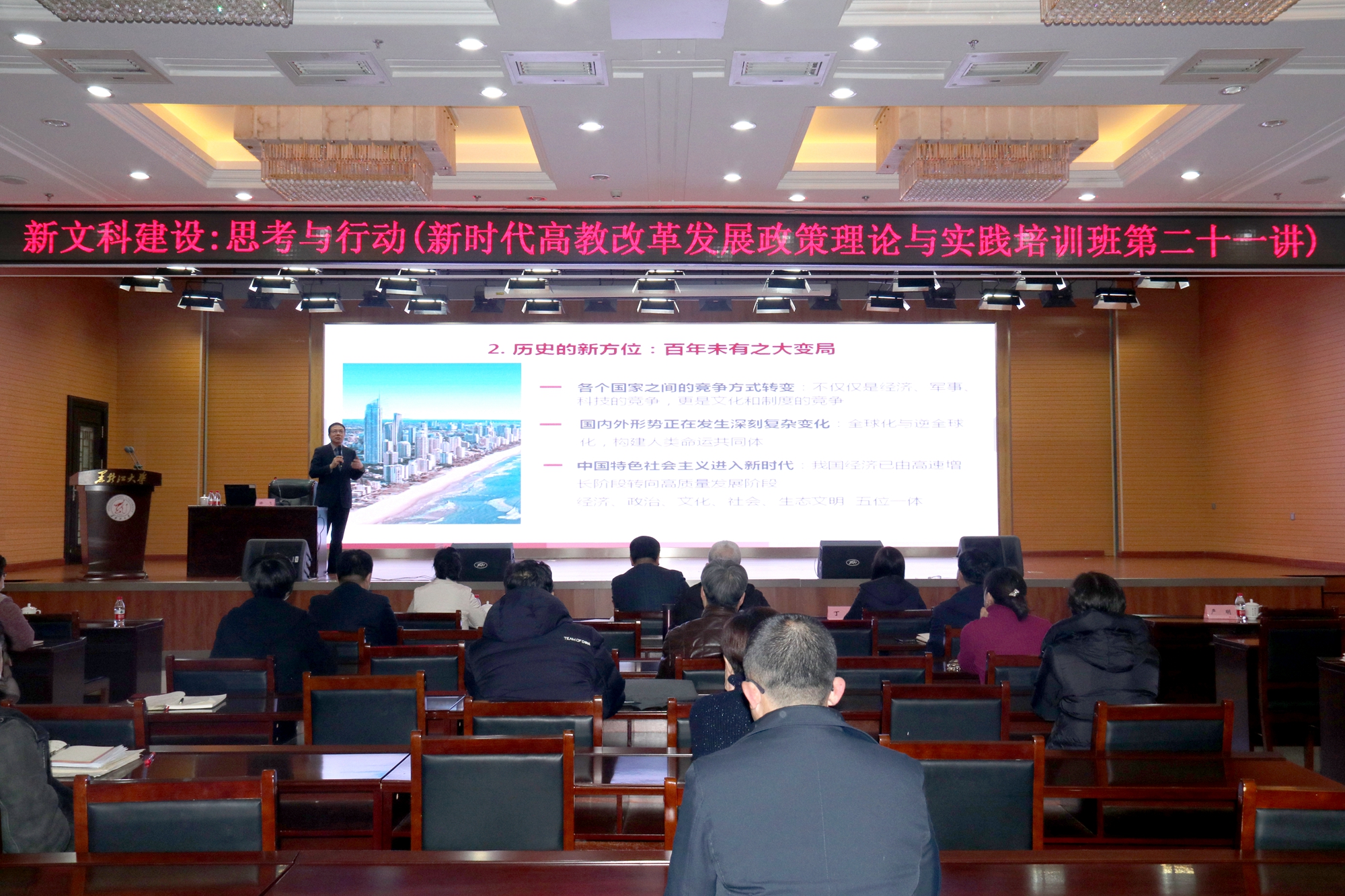 为提升党务干部业务素质水平和政治理论能力,12月3日,我校在主楼一楼报告厅举办2020年党务干部业务培训班。本次培训为新时代高教改革发展政策理论与实践培训班第二十讲。校党委副书记蒋晶洁,全校各二级党组织书记、主管学生工作副书记,副处级辅导员、党务秘书、党支部书记等参加培训班开班式。党委组织部部长黄强主持...