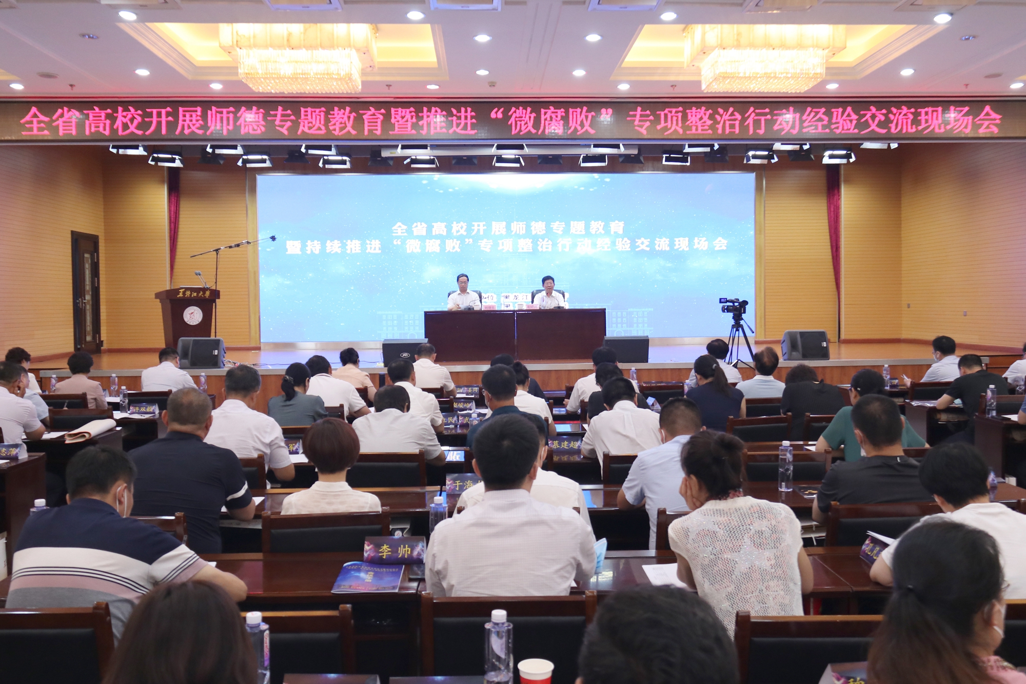 7月20日,全省高校开展师德专题教育暨持续推进“微腐败”专项整治行动经验交流现场会在我校召开。省教育厅党组成员、副厅长姜同河出席并讲话,全省各高校分管师德师风建设工作的校级领导以及主管师德师风建设工作业务处室(部门)的主要负责同志共计145人出席会议。会议由省教育厅教师工作处处长刘德宏主持。会上,我校...