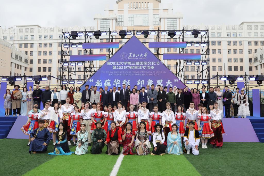 5月24日,“龙蕴华彩•印象黑大”第三届国际文化节暨2025中俄青年交流季活动在我校二号运动场举行。俄罗斯联邦驻哈尔滨总领事馆领事斯凯顶奢・亚历山大、省教育厅对外合作与交流处处长王少松、省人民政府外事办公室欧非处处长吴昊阳、哈尔滨市博物馆馆长张建鑫、伏尔加庄园总经理韦敏芳、秋林格瓦斯校园招聘经理范敏,校...