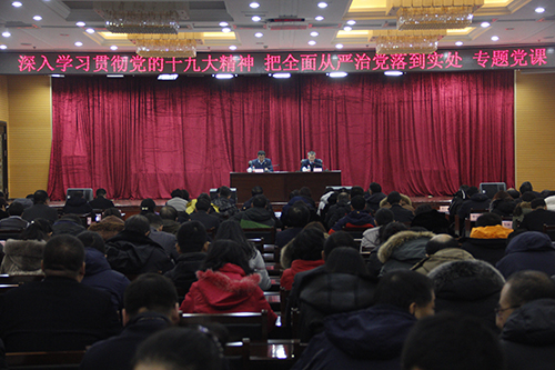 12月13日上午,校党委书记刘德权在主楼一楼报告厅为广大党员干部讲专题党课,作为学校党的十九大精神宣讲团团长,刘德权书记以《深入学习贯彻党的十九大精神、把全面从严治党落到实处》为题对党的十九大精神进行了专题解读,这次党课既是一场党的十九大精神专题宣讲,又是一堂生动的廉洁教育课。全体校领导、中层干部、...