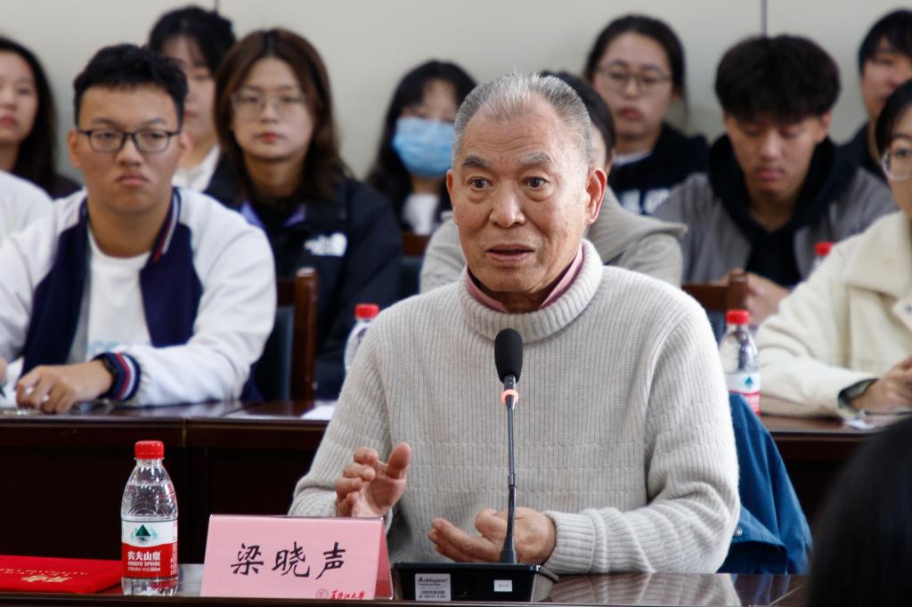随后,梁晓声与师生们展开了座谈。在谈到创作灵感的话题时,梁晓声说,作家们的灵感产生是人们都具备的一种潜质,灵感产生之后,有的人依靠生活做支撑,灵感就形成了作品,反之,没有生活支撑的灵感难以形成作品,所以说,作家要有深厚的生活积累。在谈到新作《父父子子》时,梁晓声坦言这是自己创作的“例外”,这本书的创作历程很特殊,源于哈尔滨市委宣传部寄过来的《哈尔滨大事记》,哈尔滨知识分子在抗战早期中的贡献与牺牲给了他很大的冲击,于是就写了这本书,希望这样的家国情怀能传递给后来人。梁晓声引经据典,从高尔基、托尔斯泰等作家的作品入手,就师生们关心的话题一一解答。他希望无论是本科生、硕士生还是博士生,都应该努力提高自己的文学文化素养、多读书、读好书,要尊重文学作品,尊重作品中天然的温度。