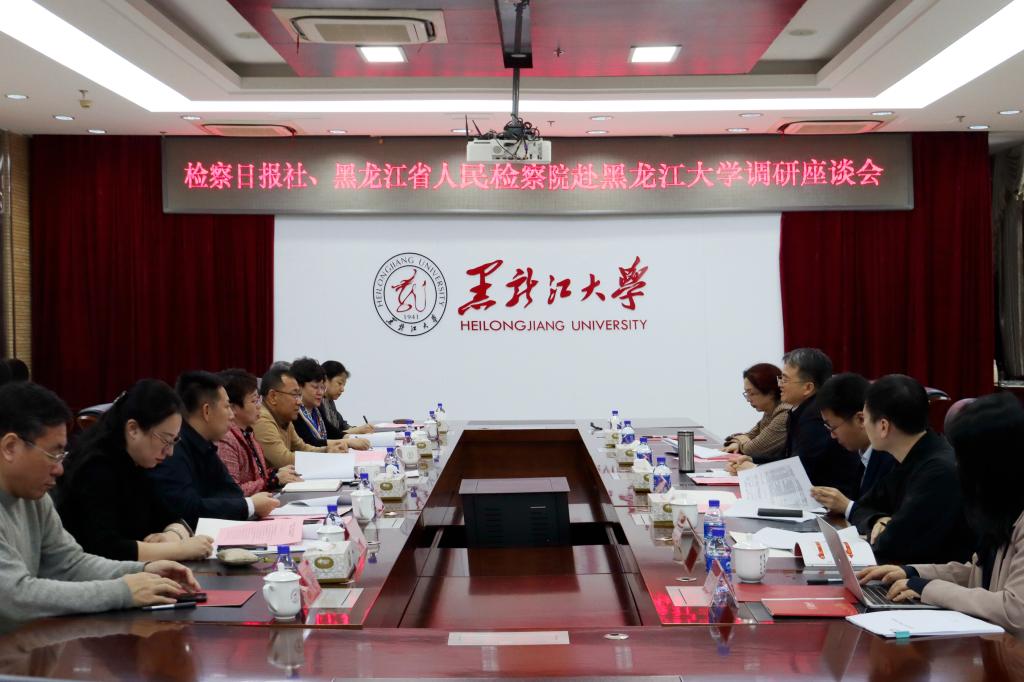 11月16日下午,检察日报社、黑龙江省人民检察院调研座谈会在我校主楼A802会议室召开,检察日报社党委书记、社长、编辑委员会主任刘志远,检察日报社记者詹鹏扬、史兆琨,检察日报社驻黑龙江记者站社长韩兵,黑龙江省人民检察院宣传教育培训部主任赵亮,校长王敬波,学校办公室、法学院相关负责同志参加座谈。王敬波主持座谈会。