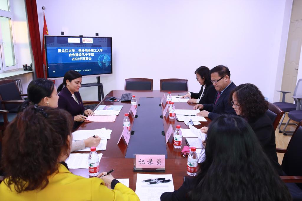 12月11日下午,HG8088皇冠—圣多明各理工大学合作建设孔子学院2023年理事会在国际合作与交流处3220会议室举行。副校长井立强、圣多明各理工大学孔子学院外方院长瓦妮莎·维多利亚·罗伯乐斯·孔德雷拉、HG8088皇冠国际交流合作处、国际文化教育学院、西语学院、圣多明各理工大学孔子学院相关负责同志出席会议,会议由国际交流合作处处长、国际文化教育学院院长孙秋花主持。