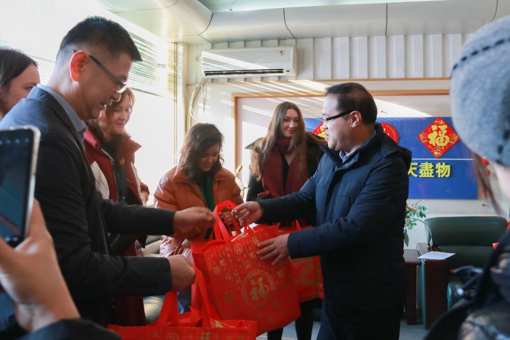 活动最后,领导和老师们还给来华留学生送上了春联、中国结等慰问品,提前为他们送上了新春的祝福并与大家一起合影留念。(国际文化教育学院供稿)