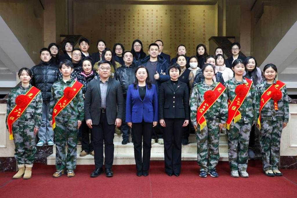 丁宏对通过层层选拔的预定新兵表示热烈的祝贺,为积极响应国家号召,携笔从戎,保家卫国,绽放青春的实际行动点赞。她对入伍新兵提出三点希望:一是要提高站位讲政治,忠于职守记初心。希望同学们坚定报国从军的理想信念,坚守志向,矢志不渝跟党走,在军旅生涯的磨炼中,把责任扛在肩上、把荣誉记在心中,用实际行动保卫祖国的繁荣与安宁。二是要刻苦训练强本领,锤炼意志强骨气。希望同学们将进入军队的军旅生涯作为实践的大平台、当做成长的大熔炉,积极主动在军队中锻炼自身、展示自身,做一个与众不同的兵、做一个优秀的兵、做一个让人放心的兵、做一个让学校骄傲的兵,真正在严明纪律、严明要求之下,比学赶帮超,能够真正做一个“有灵魂、有血性、有本事、有品德”的革命军人。三是要传承母校精神薪火,展现黑大学子风采。她鼓励大家要经常向学校和老师汇报军旅心得体会,学校会时刻关心服兵役大学生的成长进步,全力做好应征入伍学生服务保障工作,母校永远是同学们最坚强的后盾、最温暖的港湾。希望同学们用最火热的热情、最饱满的激情,在部队各项考核中以最优的成绩向学校交一份满意的答卷,让黑大精神在军营里闪光,展示“黑大人”的风采,为母校增光添彩。希望同学们牢记军人使命,牢记黑大嘱托,在军营中刻苦训练、脚踏实地,用实际行动回报学校、回报父母、回报我们伟大祖国。