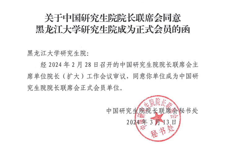 今后我校研究生院将在国务院学位委员会、教育部、黑龙江省教育厅和学校的正确指导下,更好地发挥中国研究生院院长联席会会员单位的作用,继续深入贯彻落实习近平总书记关于研究生教育的重要指示精神和党的二十大精神关于教育的决策部署,持续聚力研究生教育高质量发展,不断推进我校研究生教育在培养创新人才、提高创新能力、服务国家和龙江经济社会发展等方面发挥更为重要的作用。(研究生院供稿)