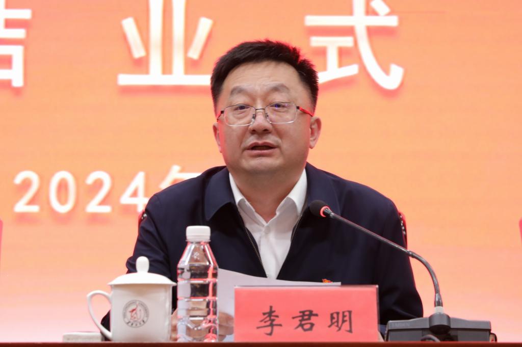 4月23日下午,我校在主楼一楼报告厅举行党纪学习教育专题读书班结业式。校领导迟宝旭、李君明、梁东辉、于文秀、井立强、李卓,以及全校中层干部参加结业式。会议由校党委副书记李君明主持。