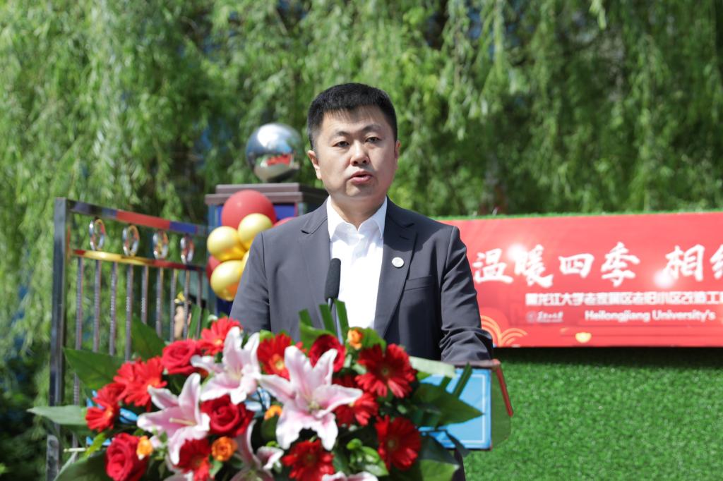 李卓在仪式上表示,学校一直高度重视民生工作,针对老家属区存在诸多问题,学校做了大量工作来回应居民关切。此次老旧小区改造工程是落实市委、市政府相关举措、提升城市形象的重要行动,也是彻底解决老家属区问题的重要契机,对居民切身利益和学校发展意义重大。他指出该工程于2022年5月启动申报,经各级领导积极沟通和多方推进,于2023年10月获南岗区政府批准列入旧改计划,政府投入近亿元经费,实施楼体和配套基础设施等方面改造,预计工期至今年10月末。改造完成后将由属地政府主导引进高水平物业公司。他强调,各相关单位应加强沟通协同,严格按标准规范施工,建立质量监督机制,同时也呼吁广大老师、家属和居民积极参与,提出意见建议,共同将老家属区旧改工程变成精品、样板和民心工程。
