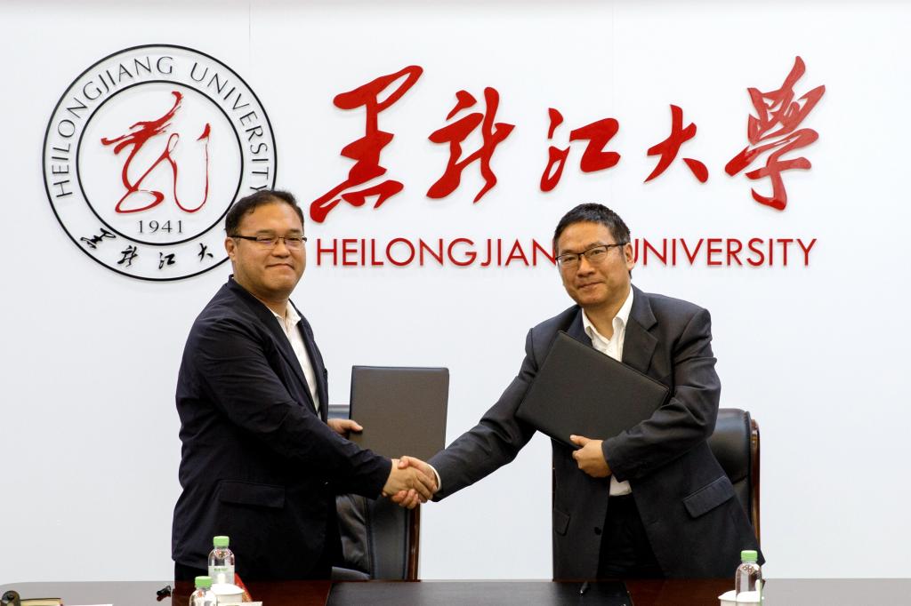 5月30日下午,我校在主楼A802会议室与新华社黑龙江分社举行合作协议签约仪式暨共建实习实践基地揭牌仪式。新华社黑龙江分社社长顾钱江、副社长熊言豪,校党委书记迟宝旭、党委副书记李君明、副校长井立强,学校办公室、党委宣传部、教务处、社会科学处、新闻传播学院、俄语学院相关负责人参加仪式。李君明主持仪式。