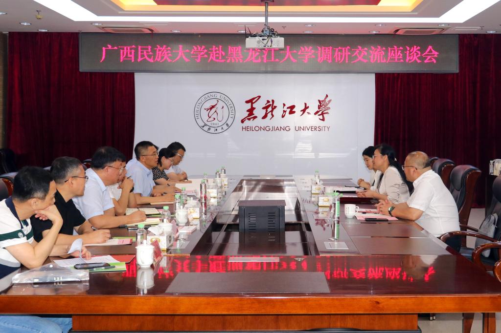8月8日上午,广西民族大学校长、党委副书记韦仕珍一行到我校调研交流,并在主楼A802会议室召开座谈会。校党委书记迟宝旭、副校长井立强出席会议,教务处、科学技术处、国际合作与交流处、生命科学学院、中俄学院、农业微生物技术教育部工程研究中心相关负责同志陪同调研座谈。会议由井立强主持。
