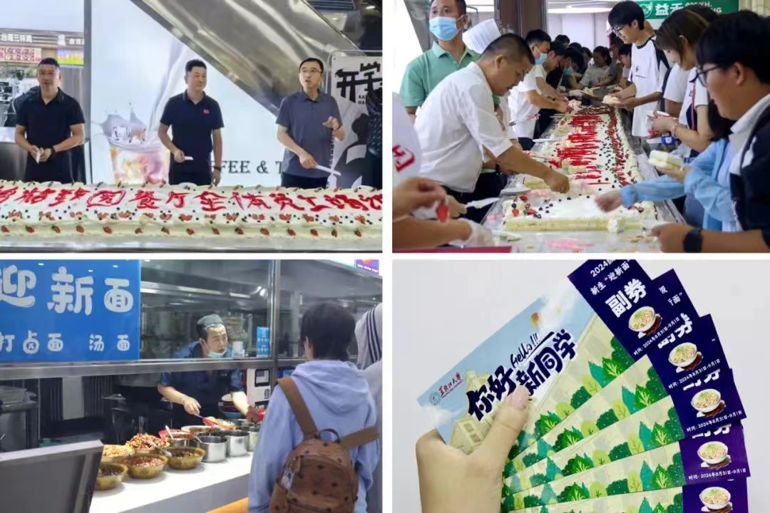 后勤保障处准备的1万余份“迎新面”,8.8米长的迎新大蛋糕,让新生品尝到“家”的味道。迎新车队、校医院志愿服务、延长食堂开放时间……一系列暖心举措,不仅让新生感受家的温暖,也让家长更放心、更安心。