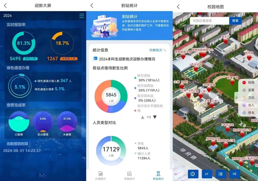 今年,学校升级数字迎新系统,推出智慧迎新平台。报到前,新生通过迎新系统完成信息采集、到站登记、绿色通道、职业发展测试等所有预报到流程。