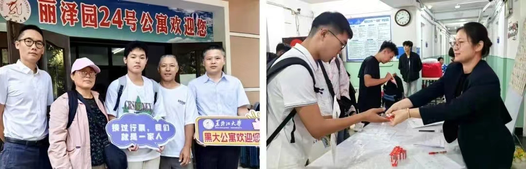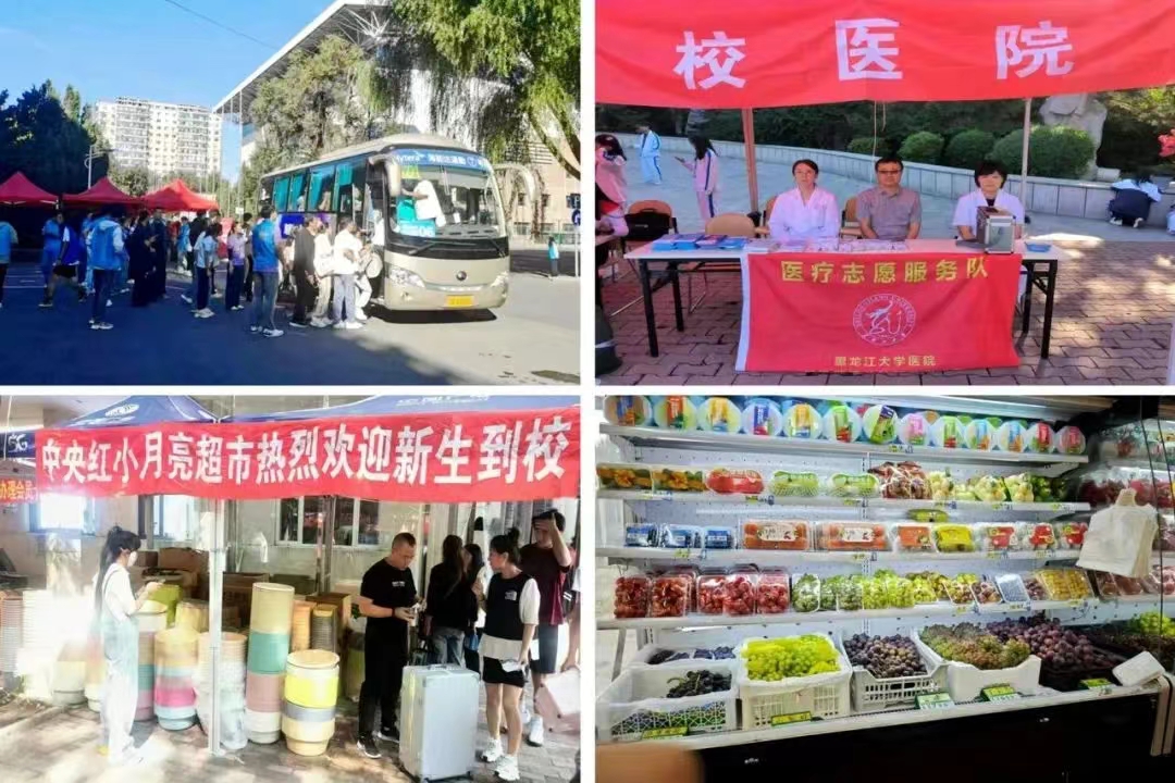 报到当天,学校在哈尔滨站、哈尔滨西站设置了接站点,校内安排中转车和近千名志愿者,设置党员先锋岗,手递手护送新生到公寓楼。