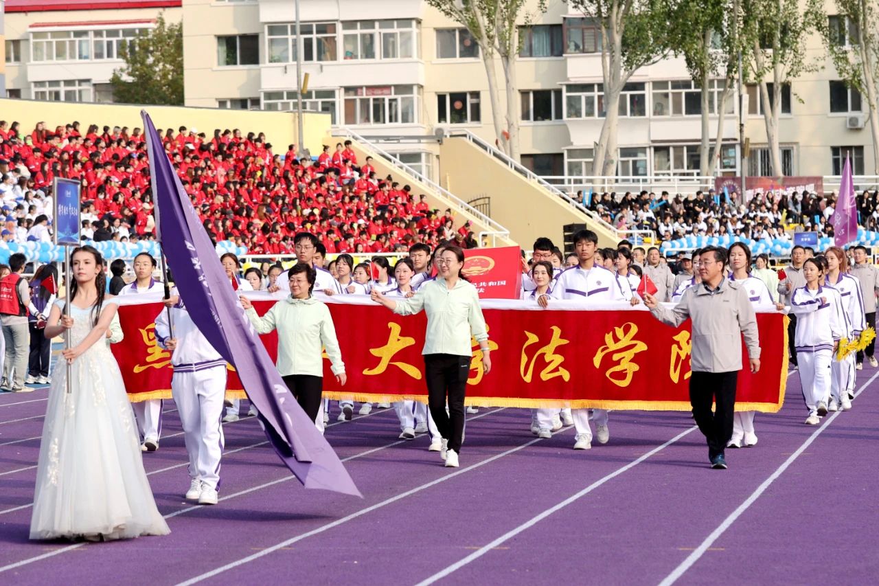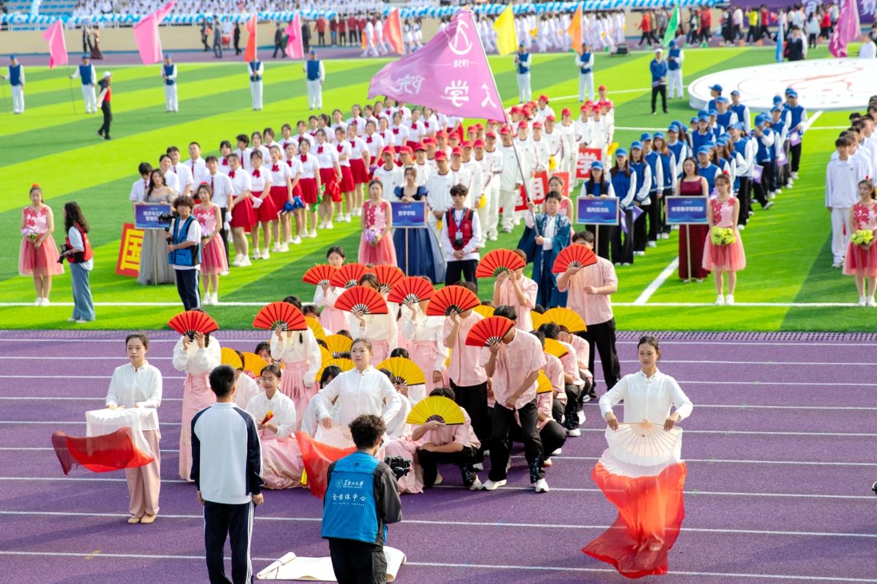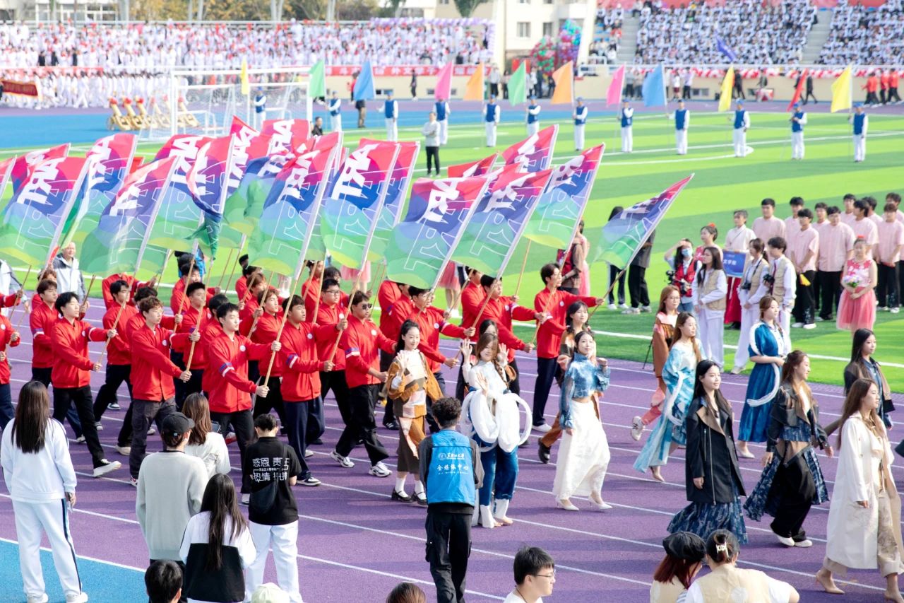 伴随着激昂的音乐,全校各单位运动员代表方队在国旗护卫队、花束队、刀旗队的引导下有序进入会场并接受检阅。他们队列整齐,精神抖擞,以铿锵有力的步伐、高亢嘹亮的口号充分展现出广大学子朝气蓬勃的青春活力与团结奋进的精神风貌。