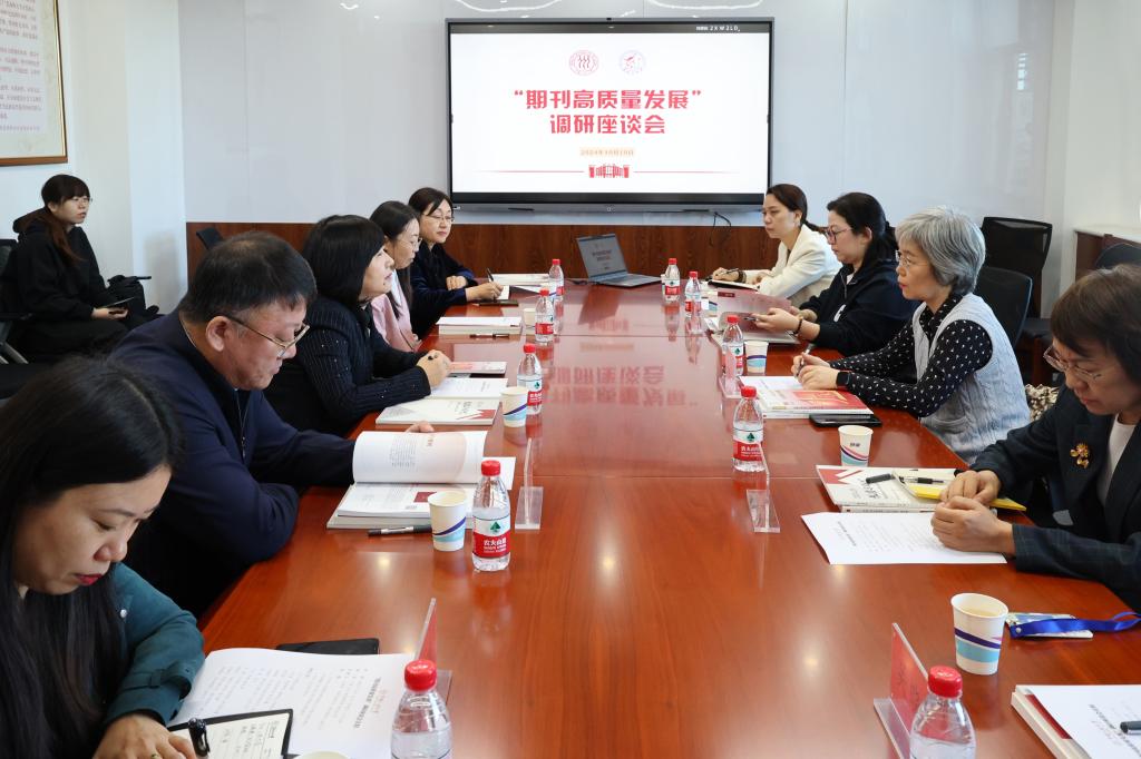 会上,于文秀副校长介绍了此次调研的背景和HG8088皇冠主办期刊的发展现状,中国人民大学期刊管理中心副主任陈骊骊介绍了人民大学期刊总体建设情况,《中国人民大学学报》常务副主编宋健、《教学与研究》副主编陈翔云交流了办刊经验。与会人员围绕在新的形势下如何进一步促进“期刊高质量发展”这一主题进行了富有成效的探讨。