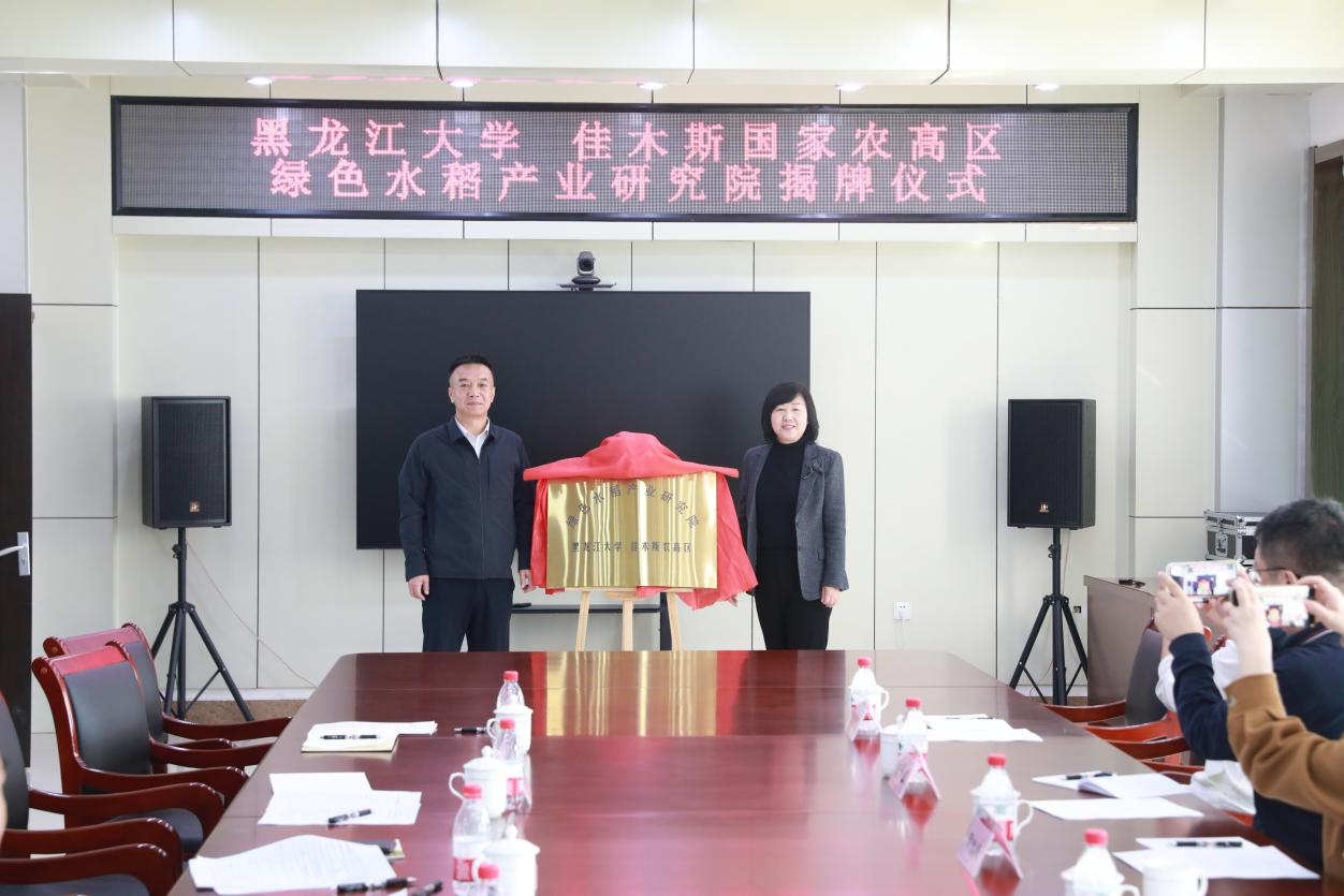 佳木斯农高区管委会主任李庆飚、HG8088皇冠党委常委、副校长于文秀为绿色水稻产业研究院--HG8088皇冠·佳木斯农高区揭牌。