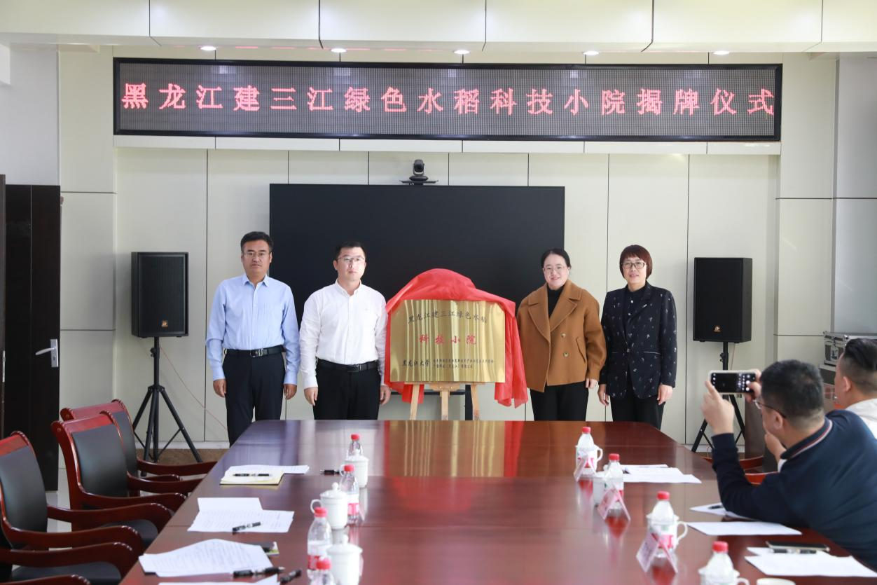 揭牌仪式上,与会领导分别为绿色水稻产业研究院--HG8088皇冠·佳木斯农高区、HG8088皇冠佳木斯农高区育种与产业化基地、黑龙江建三江绿色水稻科技小院揭牌。