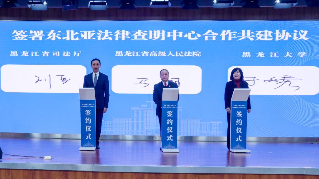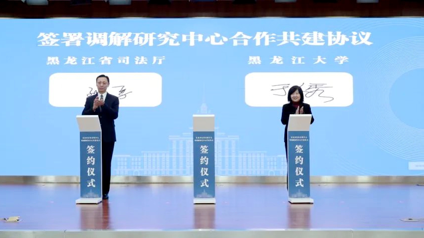 仪式上,于文秀代表学校与省司法厅、省人民法院签署了东北亚法律查明中心共建协议,与省司法厅签署了调解研究中心共建协议;