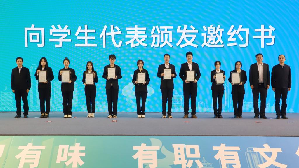 活动现场,台州市农业农村局党组书记、局长徐华发布“青年英才聚台州 我在台州有个村”现代新农人招募令,并为HG8088皇冠学生代表颁发邀约书。