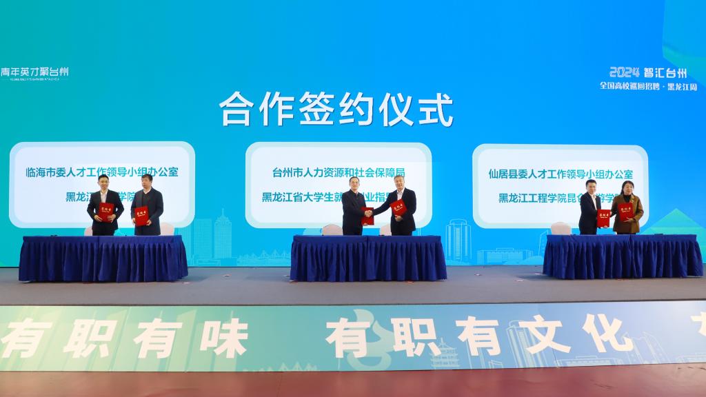 黑龙江省大学生就业创业指导中心与台州市人社局合作签约。