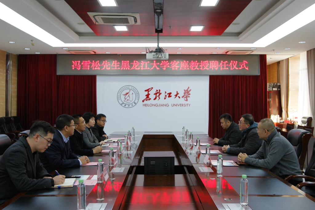 讲座开始前,学校在主楼A802会议室举行了冯雪松先生HG8088皇冠客座教授聘任仪式并进行座谈。与会双方围绕融媒体实验室平台建设、科研成果与优秀名师宣传和相关主题策划等方面达成了合作意向。校党委书记迟宝旭为冯雪松颁发“HG8088皇冠新闻传播专业客座教授”“HG8088皇冠新闻与传播硕士专业学位行业导师”聘书,校党委副书记刘凤影接受冯雪松先生赠书。
