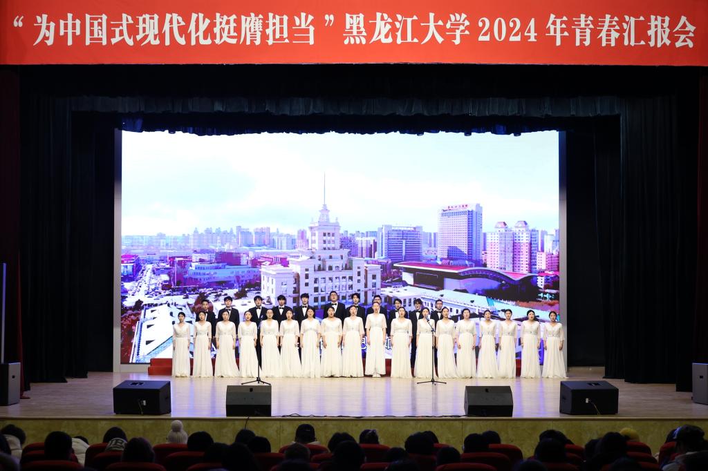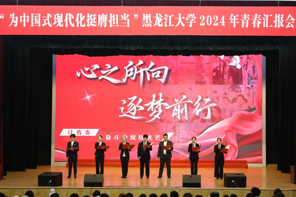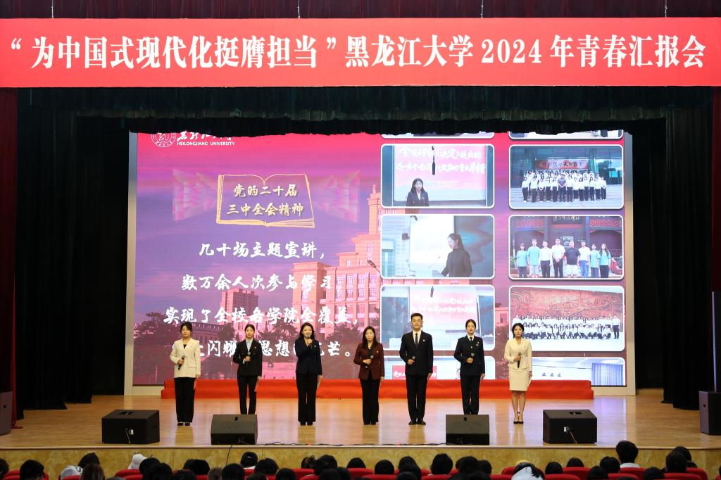 初心如磐担使命,奋楫笃行向未来。为庆祝中华人民共和国成立75周年,深入贯彻落实党的二十大和党的二十届三中全会精神,弘扬先进事迹,彰显榜样力量,引导黑大青年奋力书写为中国式现代化挺膺担当的青春篇章,12月11日下午,我校在音乐厅举办“为中国式现代化挺膺担当”2024年青春汇报会。校党委书记迟宝旭,党委副书记刘凤影,党委常委、统战部部长王培军,党委常委、宣传部部长杨其滨,党委常委、组织部部长王刚出席汇报会并为获奖代表颁奖。
