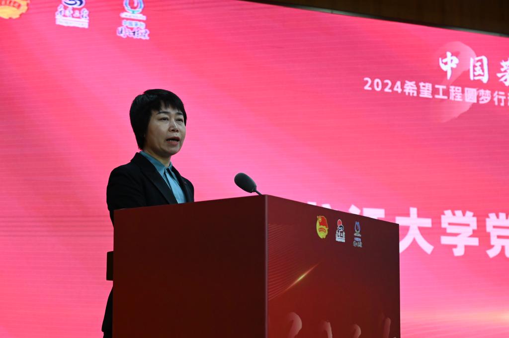 省希望工程捐助中心主任杜晶向贵州茅台多年来的向善而行致以崇高敬意并表示衷心感谢,同时希望广大茅台学子真正用好这项助学活动带来的成长助力,带着希望工程圆梦行动给予的温暖与力量,在各自的人生舞台上绽放光彩,成为公益爱心的传播者和实践者。