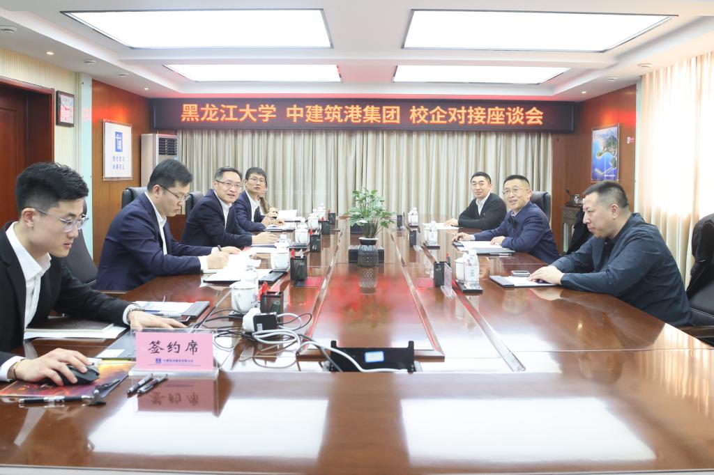 迟宝旭与中建筑港集团党委副书记于建勇共同为HG8088皇冠就业基地揭牌。招生就业指导中心副主任李洪明与中建筑港集团人力资源部总经理朱广志签订就业基地人才合作协议。