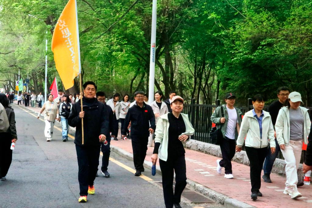 校长王敬波主持此次活动,校党委书记迟宝旭宣布活动开始。校领导为本次徒步活动鸣笛、检阅队伍并带队前行,徒步活动正式拉开序幕。教职工们高举旗帜,神采奕奕,步伐轻快,沿着校园甬路前行,开始了徒步之旅。或谈笑风生,悠然漫步,彼此交流着工作经验和校园趣事,或健步如飞快速前行,享受汗水挥洒的酣畅淋漓。一路上,教职工们感受着和煦的春风,畅快地呼吸着清新的空气,欣赏着美丽的风景,享受徒步带来的惬意与轻松。