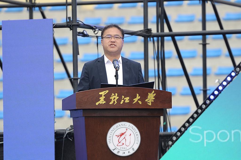 5月24日,“龙蕴华彩•印象黑大”第三届国际文化节暨2025中俄青年交流季活动在我校二号运动场举行。俄罗斯联邦驻哈尔滨总领事馆领事斯凯顶奢・亚历山大、省教育厅对外合作与交流处处长王少松、省人民政府外事办公室欧非处处长吴昊阳、哈尔滨市博物馆馆长张建鑫、伏尔加庄园总经理韦敏芳、秋林格瓦斯校园招聘经理范敏,校长王敬波、党委副书记刘凤影、副校长井立强,兄弟院校留管部门领导、学校各单位负责人以及6000余名中外师生齐聚现场共同见证活动启幕。井立强主持开幕式。