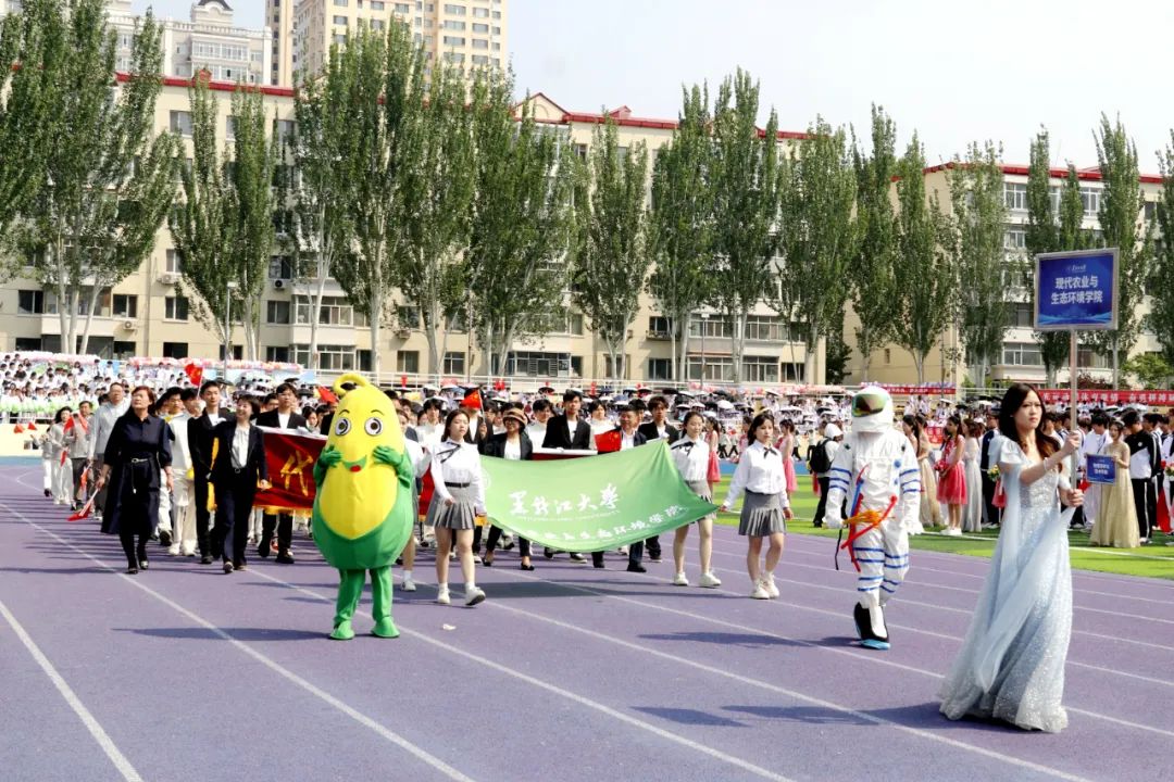 在国旗护卫队、花束队、刀旗队的引领下,全校各单位的运动员代表方阵精神抖擞、口号嘹亮,踏着激昂的旋律,迈着铿锵有力的步伐有序入场并接受检阅,充分展现了黑大师生昂扬向上的精神风貌。