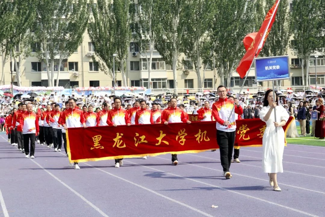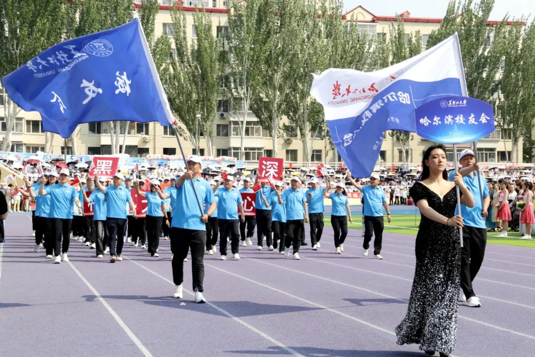 文学院代表队手持绸扇,以翩若惊鸿的戏曲身段演绎中华传统文化精髓,尽显文韵风华。历史文化旅游学院代表队融入端午龙舟元素,以昂扬的面貌、嘹亮的口号,展现了新时代大学生奋勇争先的竞技精神。机电工程学院代表队以活灵活现的舞狮、舞龙登场,通过展现传统技艺的魅力,为赛场增添青春活力。计算机与大数据学院(网络安全学院)代表队以队形变换动态拼写出“我爱黑大”的字样,传递了学院学子对学校的美好祝愿。