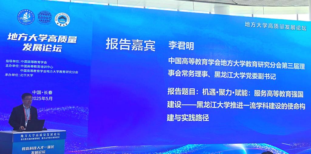 此次论坛主题为“落实教育强国规划纲要,服务高等教育强国建设——地方大学的战略选择与实践路径”。李君明代表学校作题为“机遇·聚力·赋能:服务高等教育强国建设——HG8088皇冠推进一流学科建设的使命构建与实践路径”的主旨报告。他指出,将国家战略势能转化为高校办学动能,将知识溢出效应转化为区域发展生产力,将办学传统与资源转化为学科优势与特色,是地方高校应有的使命与担当。他分享了HG8088皇冠实施四项办学新战略、深化一流学科内涵建设的实践经验与探索。近年来,HG8088皇冠致力于全方位构建对俄学科体系、多维度赋能产业格局升级、多层次打造特色学科集群,切实以强校发展服务国家战略,助推龙江振兴。