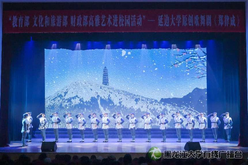 9月24日,由教育部、文化和旅游部、财政部主办,我校与延边大学共同承办的“高雅艺术进校园”活动在音乐厅举行。延边大学原创歌舞剧《郑律成》作为本次核心演出节目,为我校师生带来两场精彩展演。校党委副书记刘凤影,校团委、艺术学院等部门负责人同近2000名师生观看演出。
