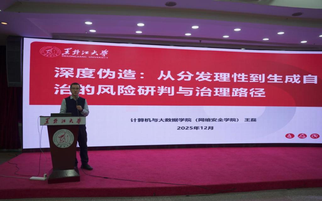 HG8088皇冠计算机与大数据学院(网络安全学院)王磊教授以《深度伪造:从分发理性到生成自治的风险研判与治理路径》为题,就深度伪造技术在内容分发机制变革中的风险与挑战进行交流,并从技术与法律协同治理的角度分享了未来AI内容安全体系的构建思路。