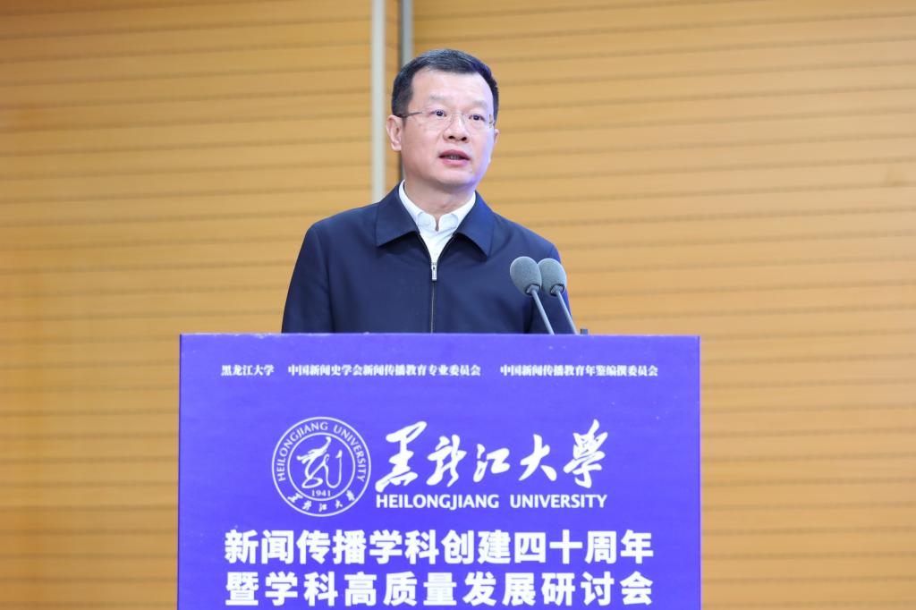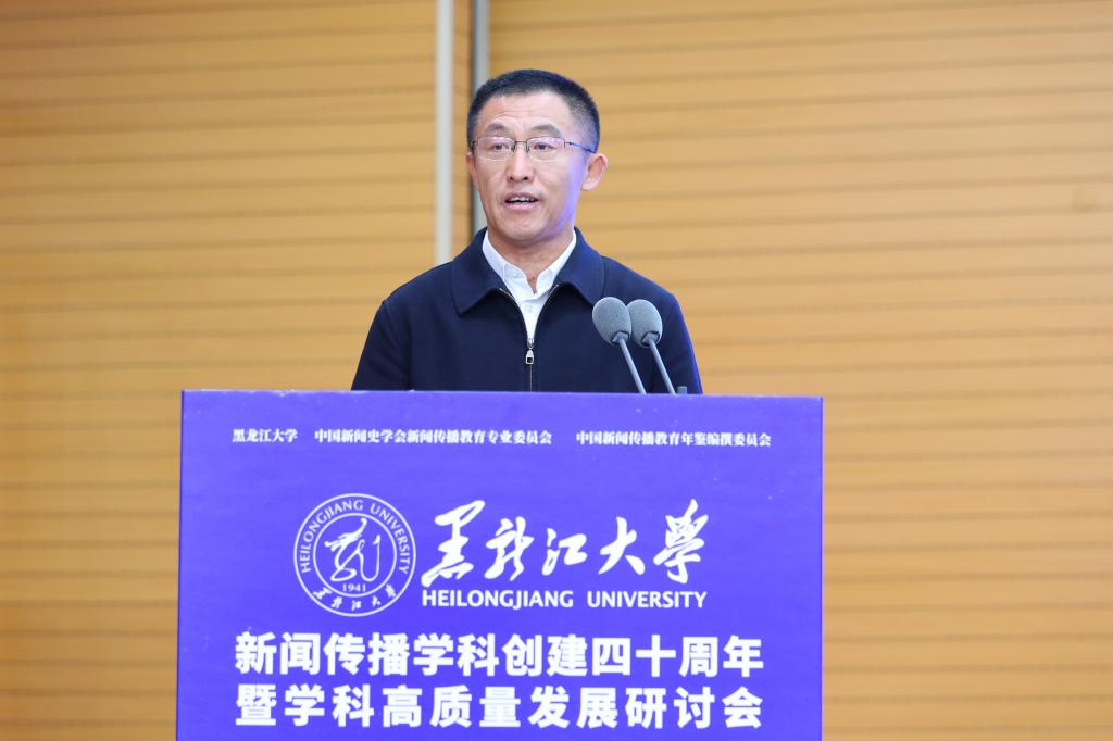 校党委书记迟宝旭致辞。他表示,我校新闻传播学科历史悠久,底蕴深厚,在人才培养、科学研究、社会服务与文化传播等领域成果丰硕。希望以此次研讨会为契机,持续推进学校新闻传播学科建设与发展,为教育强国建设和龙江振兴发展贡献黑大新闻传播的智慧力量。
