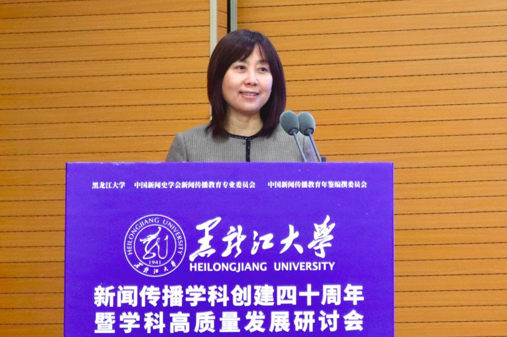 黑龙江广播电视台(省全媒体中心)总编辑曾庆怡致辞。她表示,黑龙江广播电视台希望与黑大新闻传播学院继续携手,加强“产学研用”一体化建设,联合开展课题研究与精品创作,深化互聘交流,实现理论与实践双向赋能。