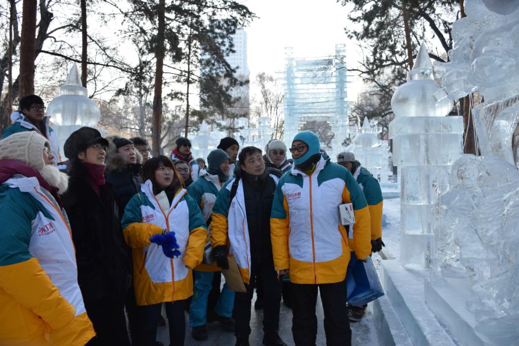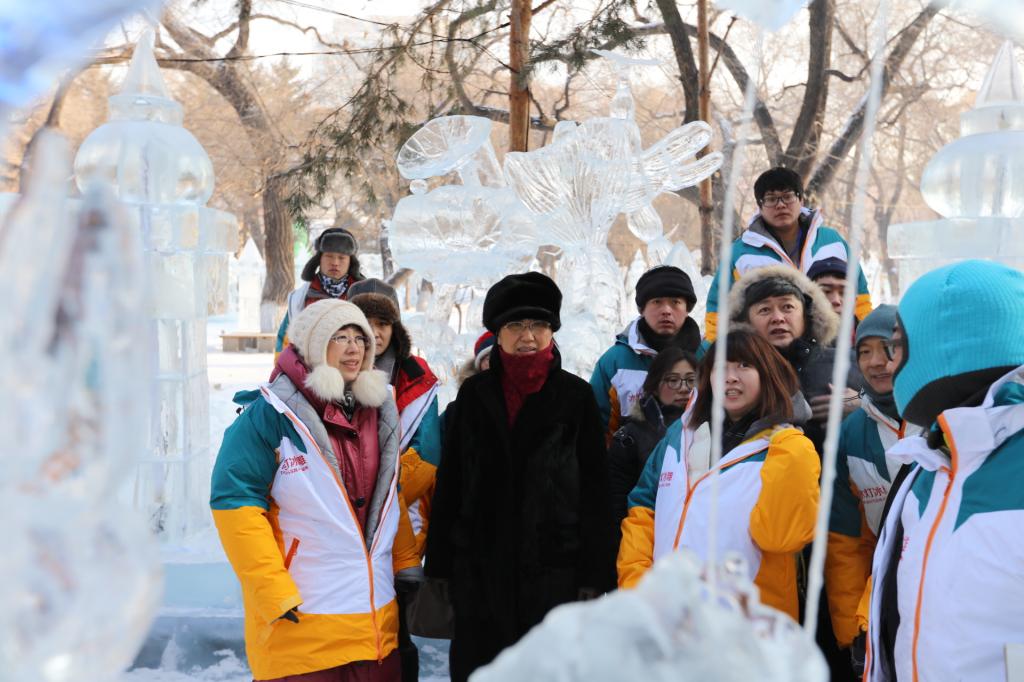 12月29日上午,校长何颖率我校社科处、教务处、资产处、宣传部、创业教育学院以及学工部等部门同志一行八人,前往兆麟公园视察我校的“国家艺术基金”培训项目实训基地并观摩学员冰雕的实践成果。