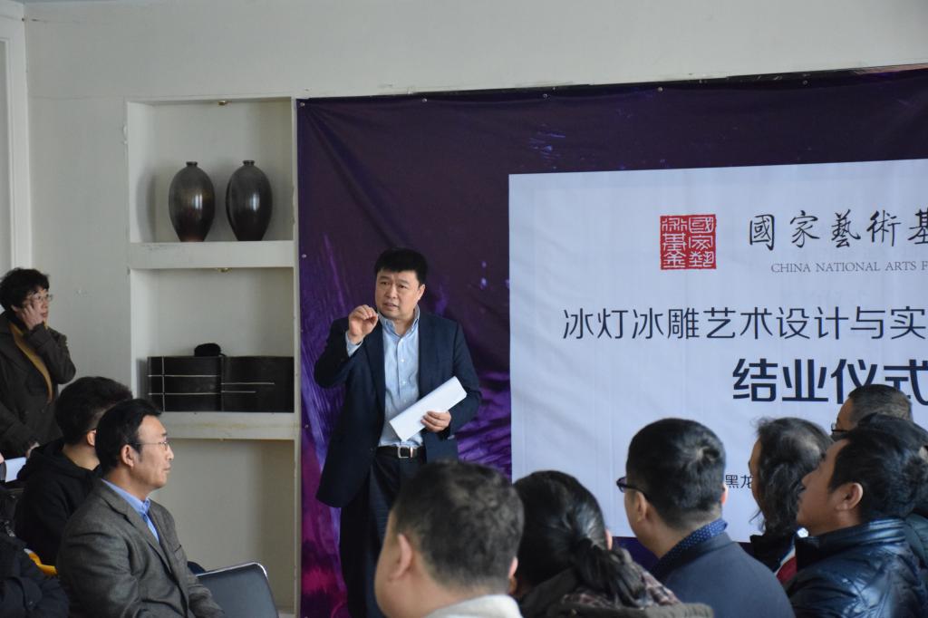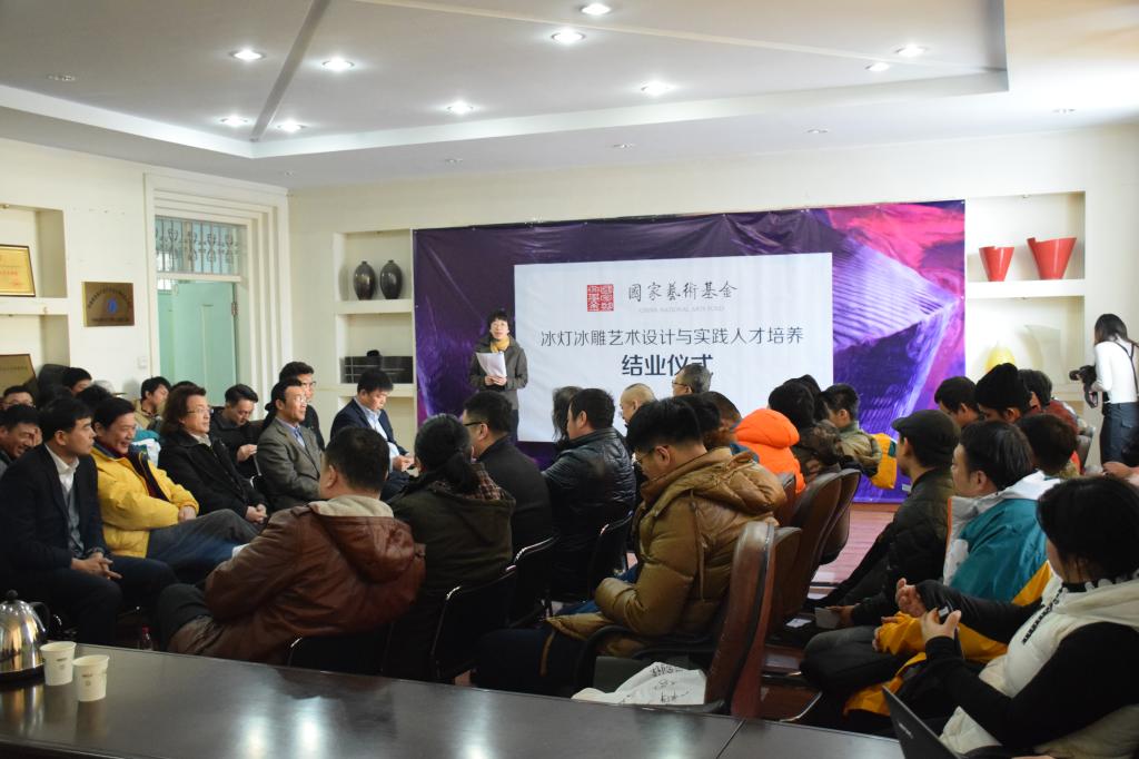 1月25日上午,“冰灯冰雕艺术设计与实践人才培养”项目结业仪式在艺术楼会议室举行。黑龙江省艺术研究院院长谭博、哈尔滨市画院院长吕滨、哈尔滨冰灯艺术博览中心副主任朱晓东、黑龙江省艺术设计协会常务副会长兼秘书长张震甫以及项目培训导师参加仪式,HG8088皇冠副校长严明以及党委宣传部、教务处、艺术学院相关负责人出席仪式。