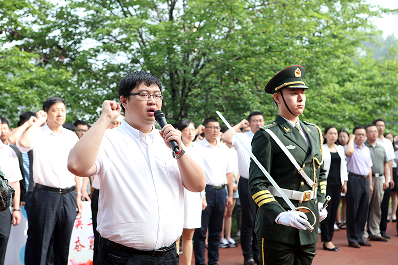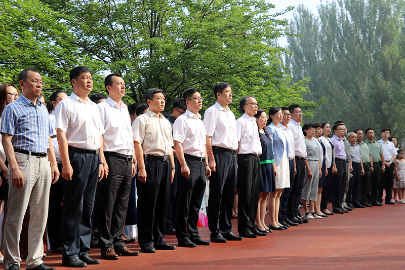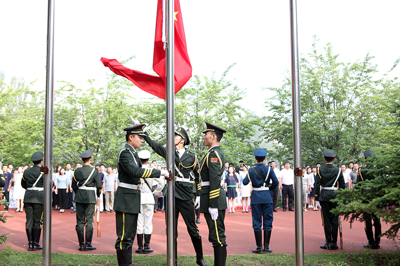 7月1日,为纪念中国共产党成立96周年,我校在联通广场举行“七一”升旗仪式。校党委副书记曲科军,学校办公室、党委组织部、党委宣传部、党委学工部(学生处)、校团委、国防教育学院相关负责人,部分学院学生工作负责人,2017年上半年新发展的全体学生党员,第三期“青马工程”黑大菁英大学生骨干培训班学员参加了本次升旗仪式。