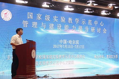 国家级实验教学示范中心联席会工作委会主任张新祥发表了重要讲话,他充分肯定了严校长提出的以学生能力为中心的教育改革理念,并解读《国家级实验教学示范中心管理办法》和《教育部办公厅关于加强高校教学实验室安全工作的通知》两个教育部重要文件外,还对2016年度国家级实验教学示范中心考核评估工作进行了总结。他指出新形势下实验教学示范中心在人才培养中的作用是无法估量的,希望参会人员提出管理办法的具体细则以便于建立更有效的培养机制。