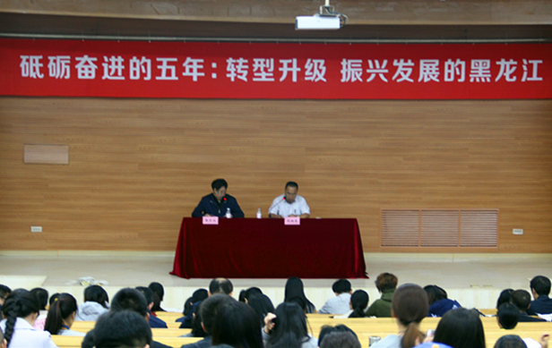 祝福恩教授从介绍党的十八大之前我省经济发展的现状切入,分析了龙江发展滞后的原因,提出了龙江振兴发展的对策思路。他说,党的十八大以来,习近平总书记非常重视黑龙江的发展,指出了龙江经济滞后的原因,一是产业结构偏重,二是民营经济偏弱,三是创新人才偏少。祝福恩教授认为,现在我省振兴发展的硬件基础基本形成,省委省政府已经制定完善了黑龙江未来发展的战略方针,相信我们省未来的发展一定会蒸蒸日上。祝教授幽默风趣、生动鲜活的讲授风格令现场气氛十分活跃。这场报告理论深厚、结构严谨、条理清晰、内容丰富、案例鲜明、通俗易懂,既是一场省情报告又是一次政治理论辅导,令所有在场师生既了解了我省的经济发展情况,又对我省未来的发展充满希望。