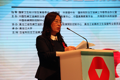 中国性病艾滋病防治协会秘书长王新伦在讲话中肯定了我校在防艾工作中的热情与责任,并指出,青春时期正是大学生形成三观之时,准确把握防控艾滋病的观念与知识有利于形成防艾的良好氛围。她号召大学生们贡献自己的创意、激情,积极参与到抗击艾滋病的行动中,让艾滋远离校园,远离青春。