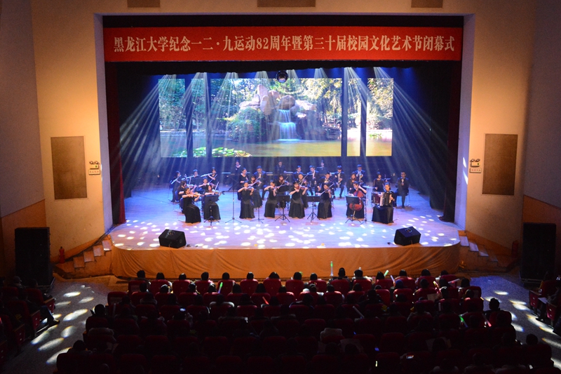 新时代、新梦想,青年学子砥砺前行。新征程、新目标,黑大青年厚积薄发。12月8日晚6时,我校在音乐厅隆重举行“时代新青年,梦想新征程”纪念一二·九运动82周年暨第三十届校园文化艺术节闭幕式。校领导刘德权、蒋晶洁、丁宏、荣盘祥、严明、陈文远、张颖春、于文秀、陈德明观看晚会并为获奖师生代表颁奖。相关职能部门负责人,各学院院长、书记、主管学生工作领导,全校专兼职团干部、青马工程黑大菁英大学生骨干培训班学员代表和学生代表共1000余人参加了晚会。
