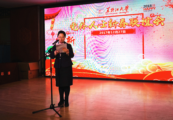 蒋晶洁副书记在联谊会上致辞。她代表学校党委向为黑大发展做出重大贡献的同志们致以诚挚的谢意和新春的问候。她表示,多年来,学校党委始终高度重视统战工作,不断强化对统战工作的领导和支持,在加强党外代表人士队伍建设、广泛凝聚党外知识分子智慧力量、充分发挥履职尽责作用等方面取得显著成效。新的一年,学校党委将同所有党内外知识分子一起,秉承初心之志,继续携手前行,力争在统战工作中展现新气象、施展新作为,开创新时代统战工作新局面。同时她希望各党外代表能够主动对接学校新一轮发展建设的任务与要求,继续以饱满的热情和坚定的信念,凝心聚力、同心协力,为学校谋篇布局发挥智力支撑作用,为攻坚克难发挥创新驱动作用,为构建和谐发展发挥维护稳定作用,在学校发展建设进程中贡献智慧。
