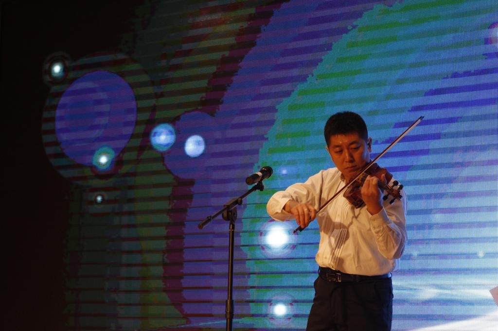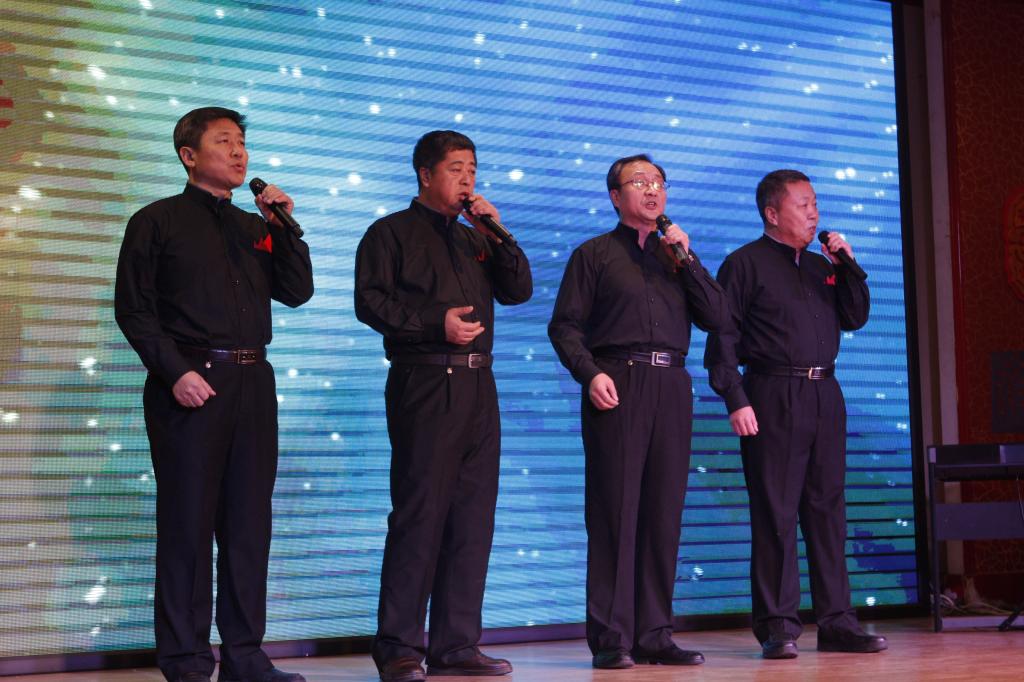 随后,精彩的文艺表演在小提琴齐奏《海滨音诗》拉开了序幕。集体诗朗诵《我爱你中国》《嘱托》铿锵有力,朗诵出对祖国,对人民的热爱;京剧《梨花颂》一腔挚情;歌曲联唱《菊花台》《邮递马车》、相声《新闻晚报》轻松欢快,引得现场观众阵阵欢呼;小合唱《我们走在大路上》、女声独唱《领航新时代》《绒花》、男声独唱《成都》饱含深情,唱出了对祖国的美好未来的希望;小提琴独奏《查尔达舞曲》琴声悠扬,悦耳动听。文艺表演在女声独唱《黑大情怀》中圆满结束。