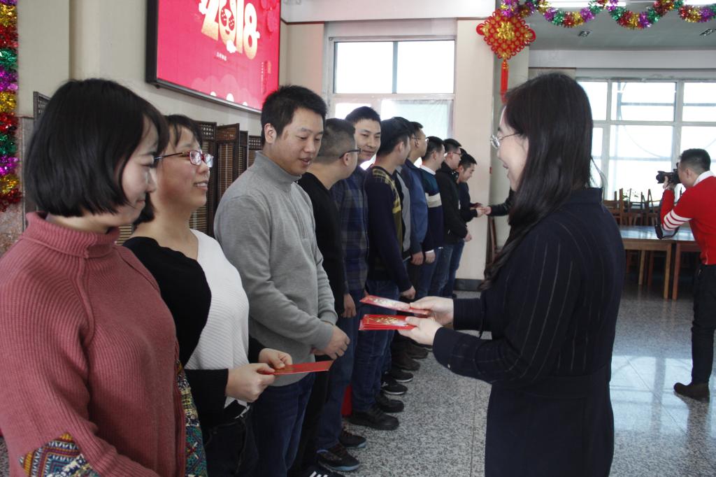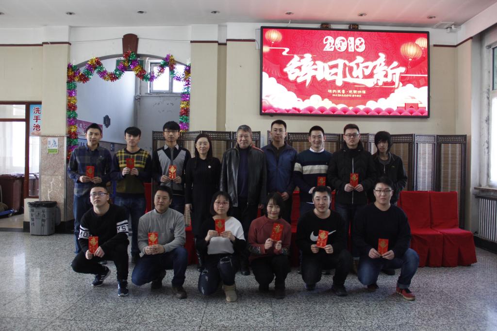 参加午宴的师生们一同拍照留念,全体留校学生领取到了除夕慰问金。