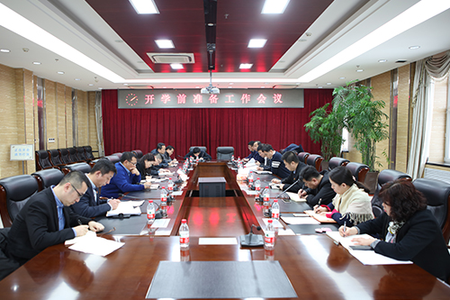 为做好新学期开学前的各项准备工作,2月28日下午,我校在主楼8楼会议室召开开学前准备工作会议。校党委副书记丁宏,副校长陈文远、董玉庭,各相关职能部门主要负责人参加了会议。会议由副校长陈文远主持。