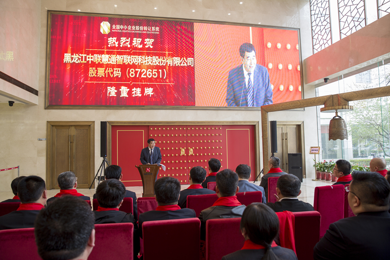 4月2日,由我校朱勇教授创办的黑龙江中联慧通智联网科技股份有限公司(以下简称“中联慧通”)成功挂牌全国中小企业股份转让系统(新三板),在京举行敲钟仪式。校党委书记刘德权、副校长陈文远、党委宣传部主要负责人出席仪式。